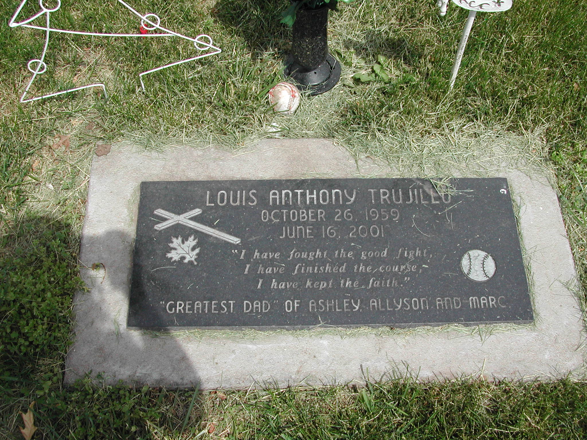 Trujillo, Louis Anthony; b. 26 Oct 1959; d. 16 Jun 2001; Greatest Dad of Ashley, Allyson, and Marc; - Veteran status N/A; Section 5; Row 02; Photo Photo