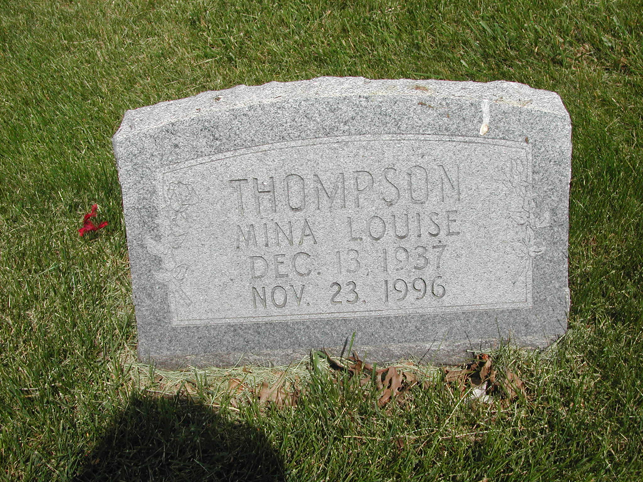 Thompson, Mina Louise; b. 13 Dec 1937; d. 23 Nov 1996; - Veteran status N/A; Section 5; Row 05; Photo