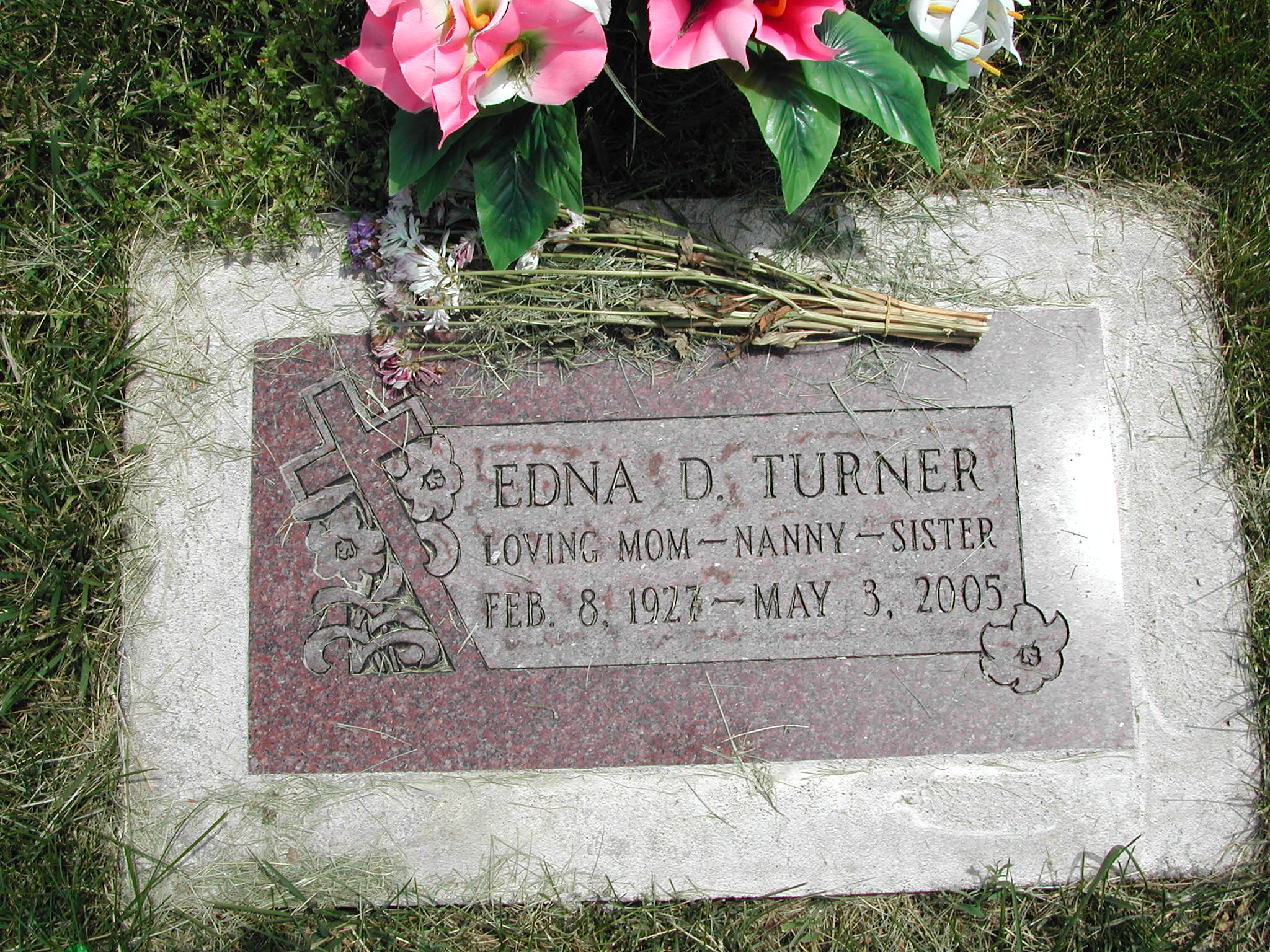 Turner, Edna D; b. 08 Feb 1973; d. 03 May 2005; Loving Mom, Nanny, Sister; - Veteran status N/A; Section 6; Row 02; Photo