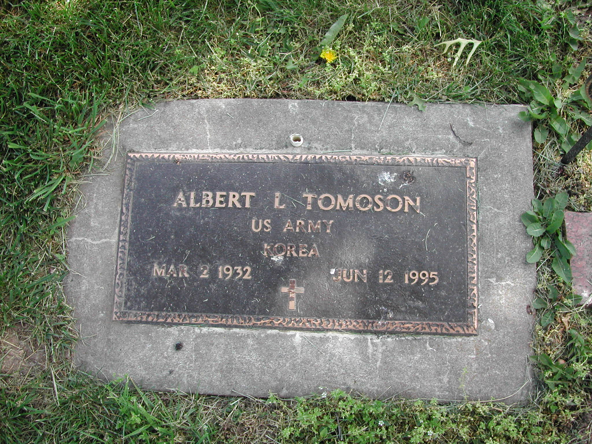 + Tomoson, Albert L; b. 02 Mar 1932; d. 12 Jun 1995; US Army Korea; + Veteran; Section 6; Row 02; Photo