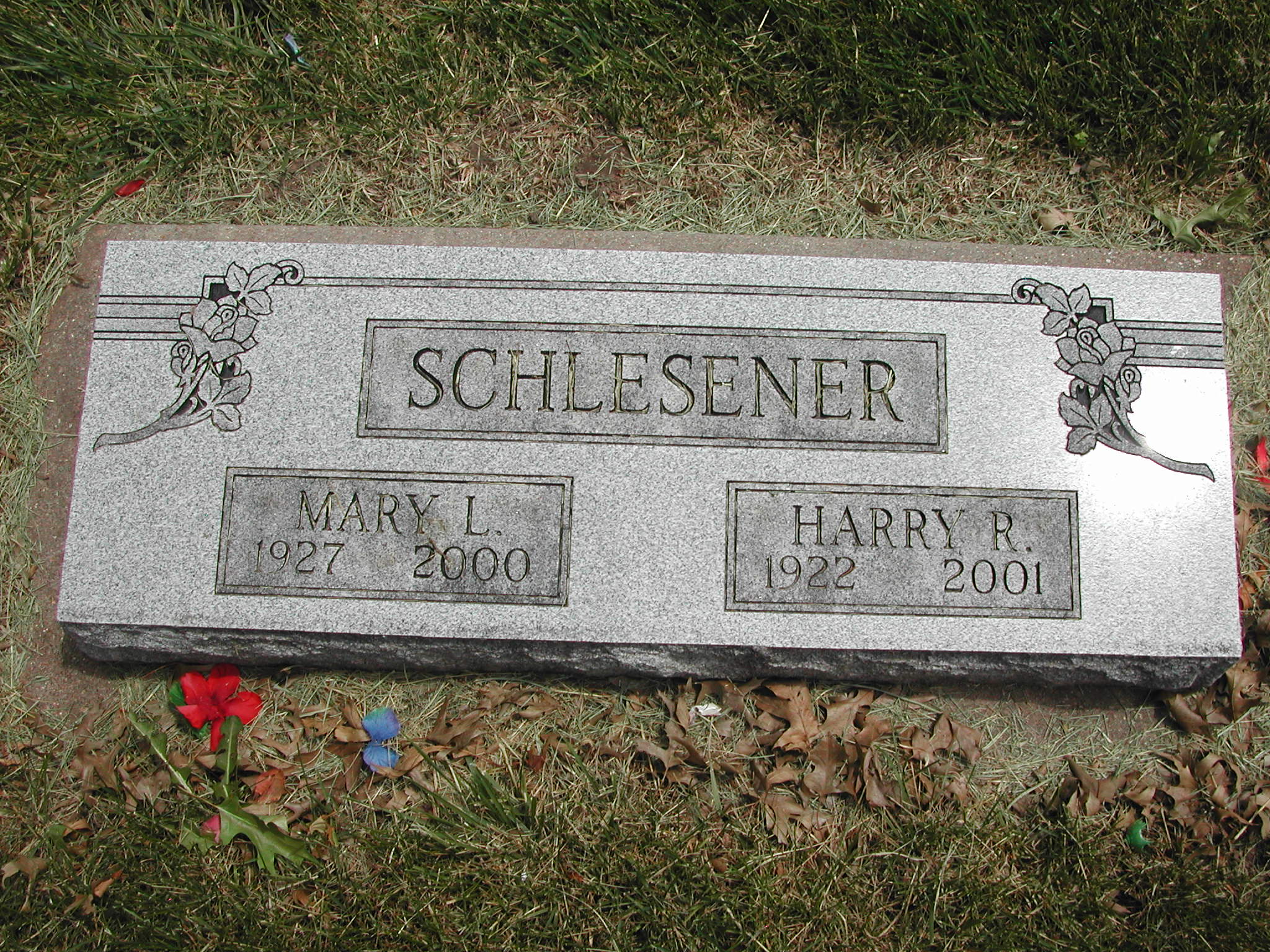 Schlesener, Harry R; b. 1922; d. 2001; s/w Mary L Schlesener; - Veteran status N/A; Section 6; Row 04; Photo