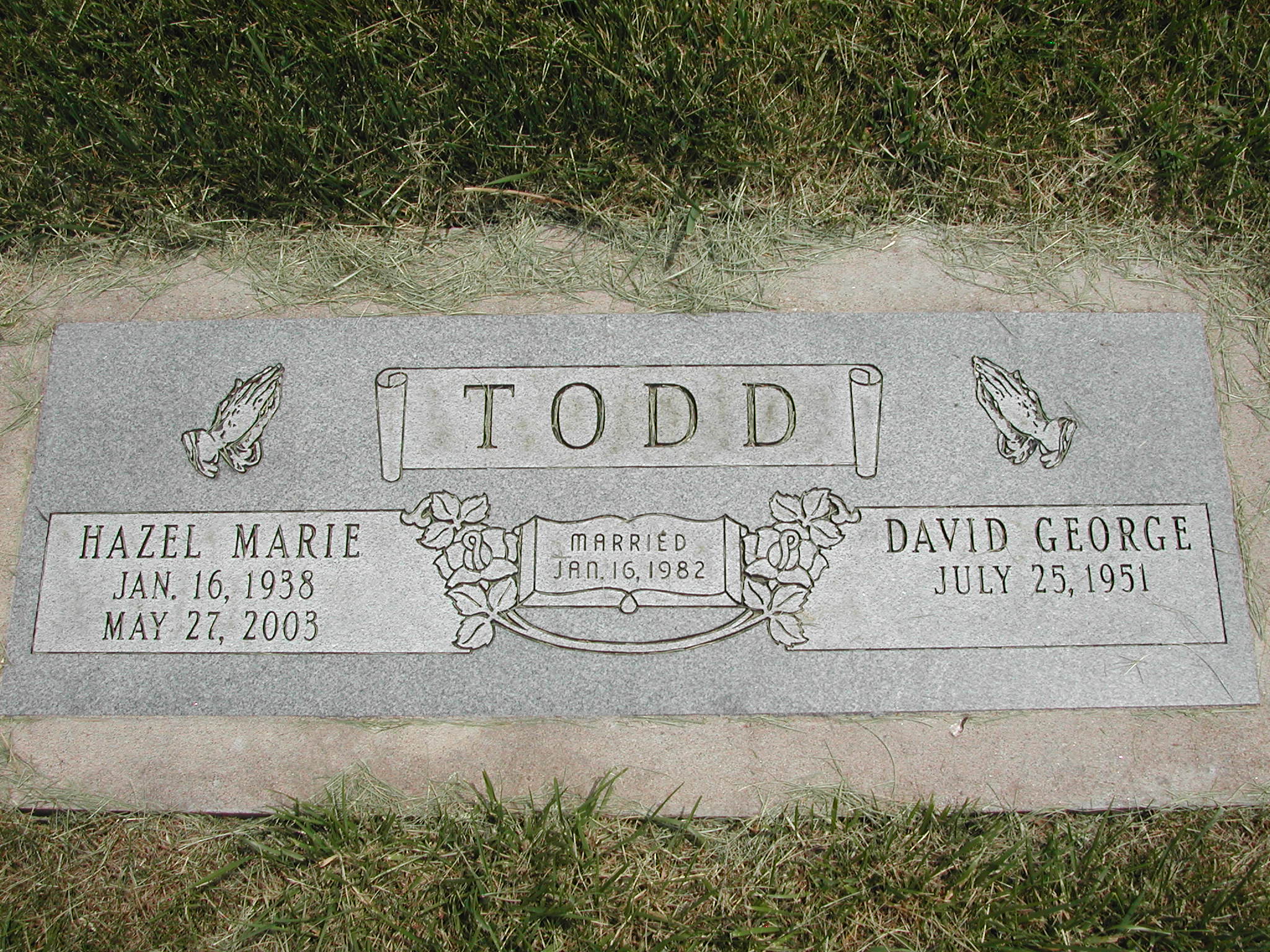 Todd, David George; b. 25 Jul 1951; m. 16 Jan 1982; s/w Hazel Marie Todd; - Veteran status N/A; Section 6; Row 06; Photo