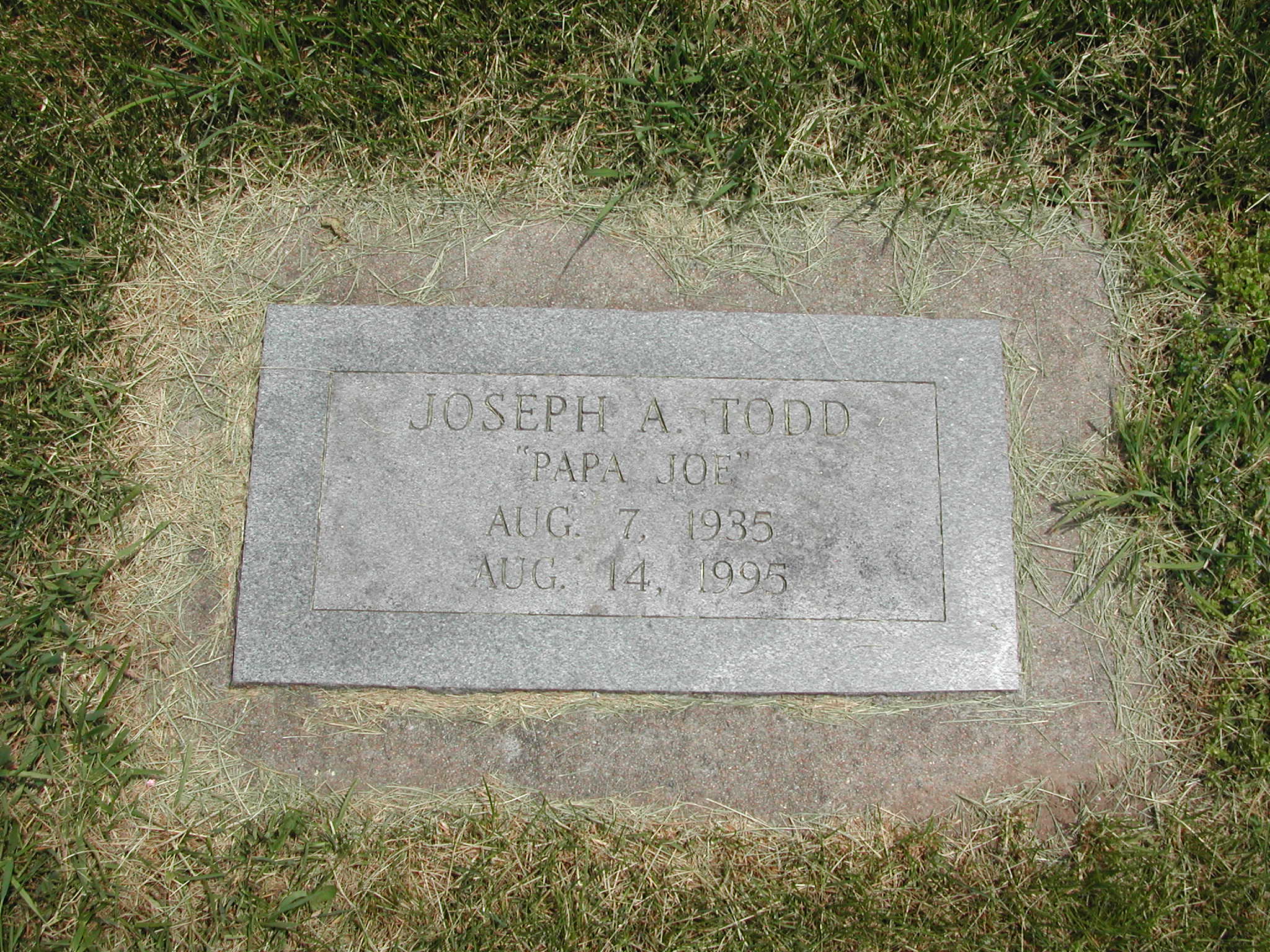 Todd, Joseph A; b. 07 Aug 1935; d. 14 Aug 1995; Papa Joe; - Veteran status N/A; Section 6; Row 06; Photo