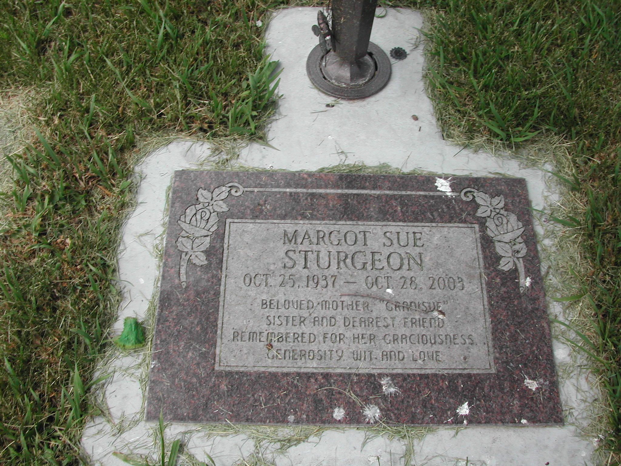 Sharp, Marguerite A; b. 25 May 1908; d. 14 Jan 2002; m. 22 Jul 1925; s/w Joseph W Sharp; - Veteran status N/A; Section 4; Row 05; Photo