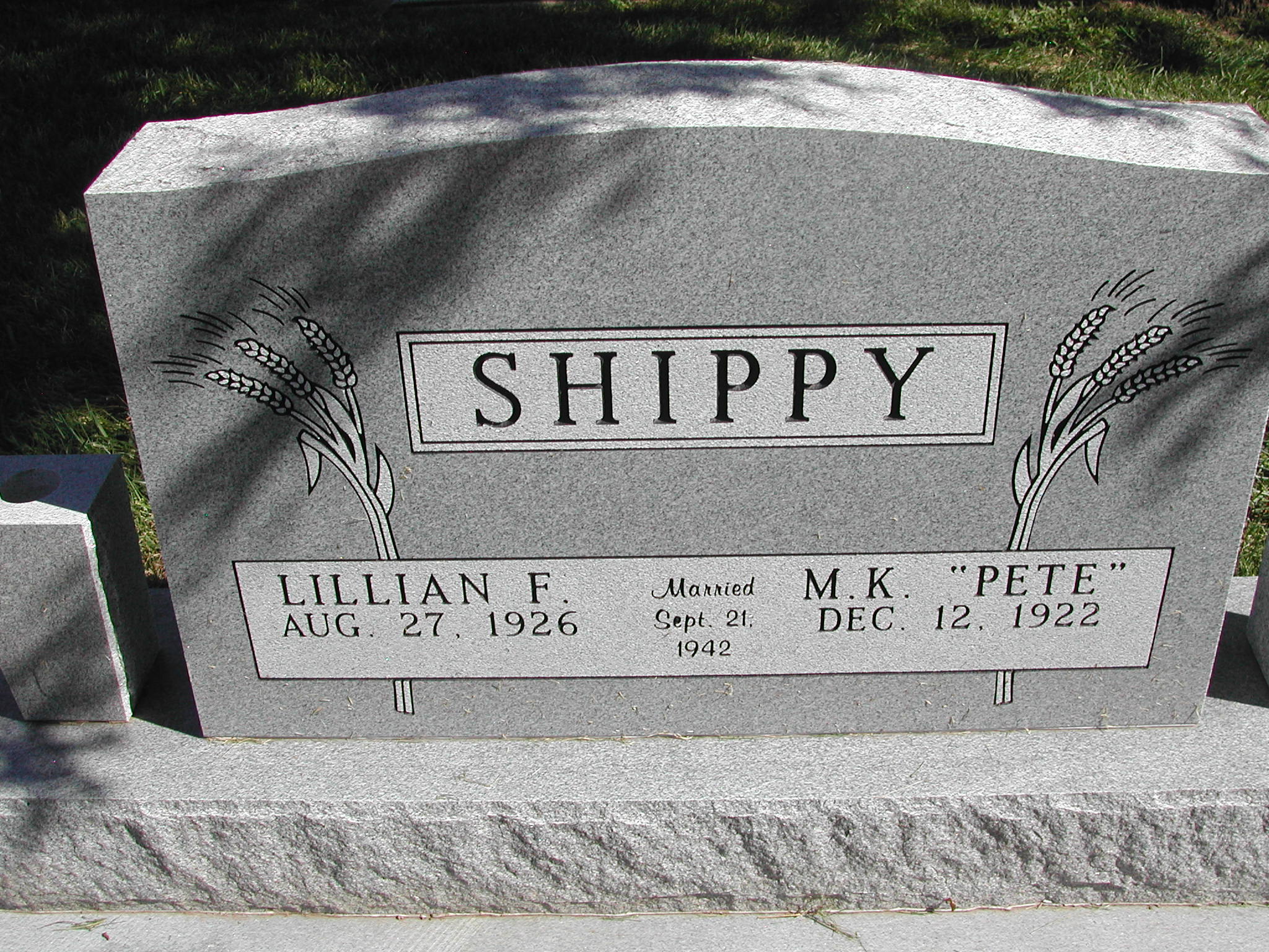 Shippy, M K; b. 12 Dec 1922; m. 21 Sep 1942; Pete; s/w Lillian F Shippy; - Veteran status N/A; Section 7; Row 01; Photo