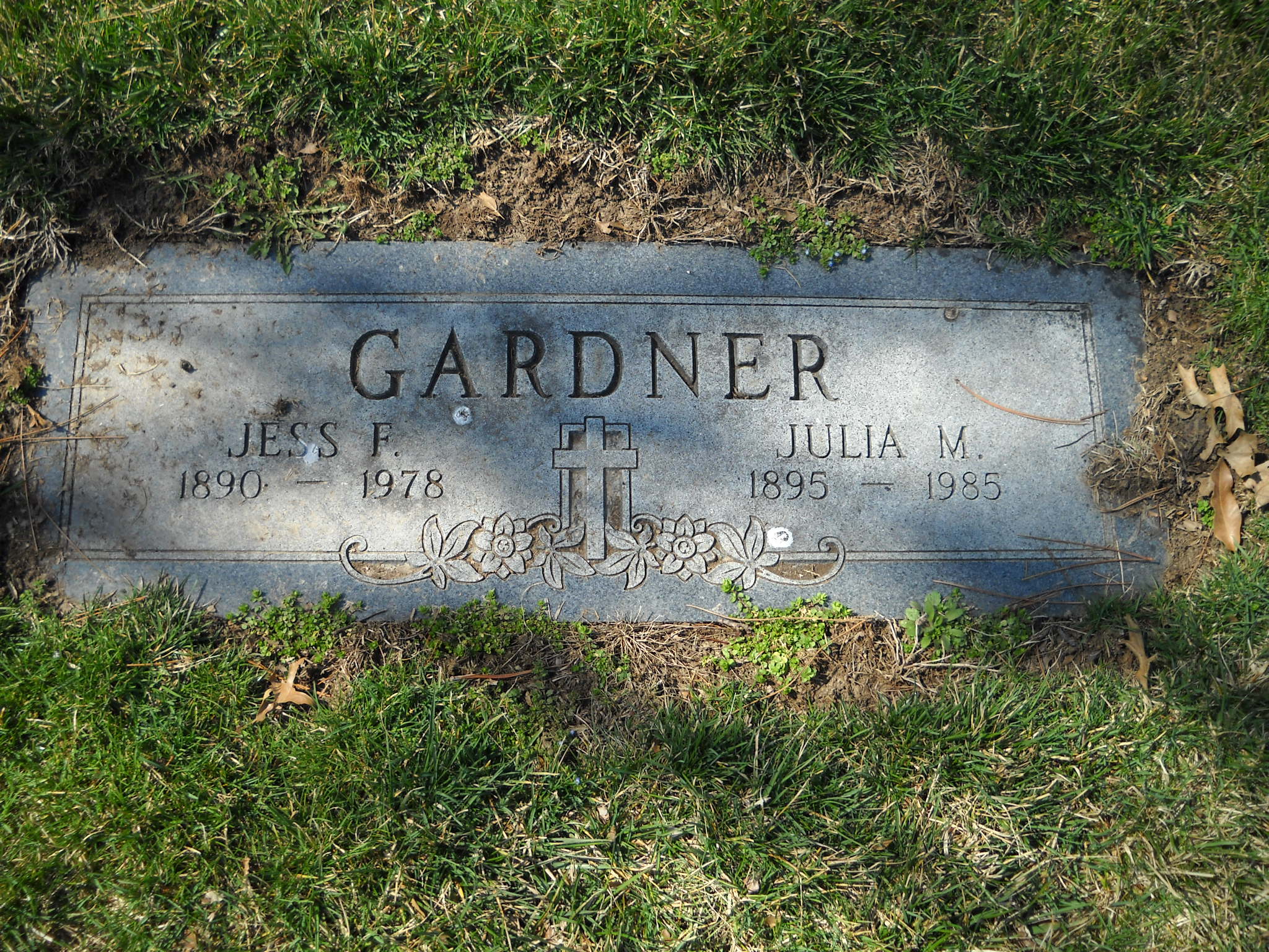 Gardner, Jess F; b. 1890; d. 1978; s/w Julia M Gardner; - Veteran status N/A; Section Ascension; Row 02; Photo