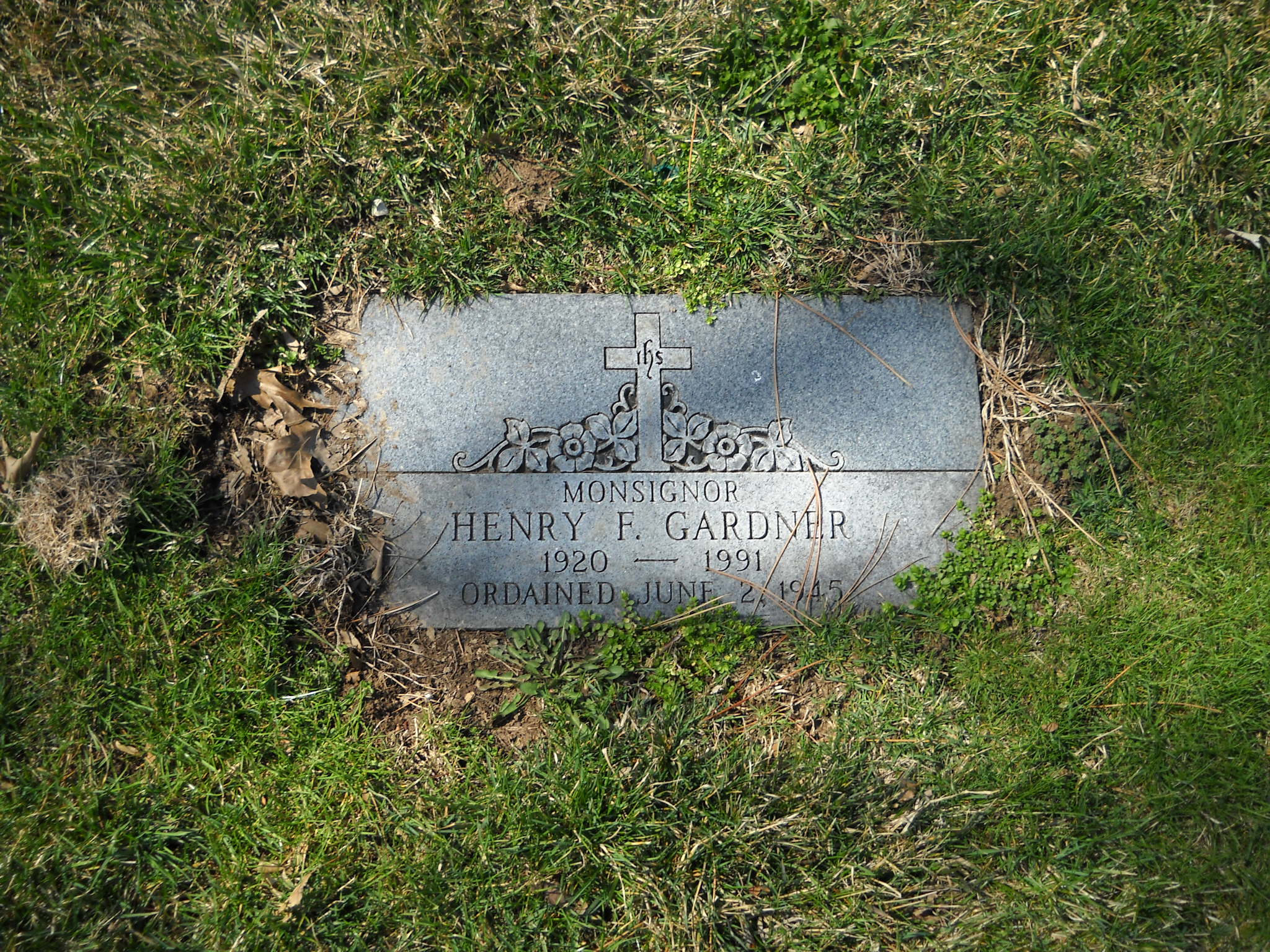 Gardner, Henry F Monsignor; b. 1920; d. 1991; Ordained June 2, 1945; - Veteran status N/A; Section Ascension; Row 02; Photo