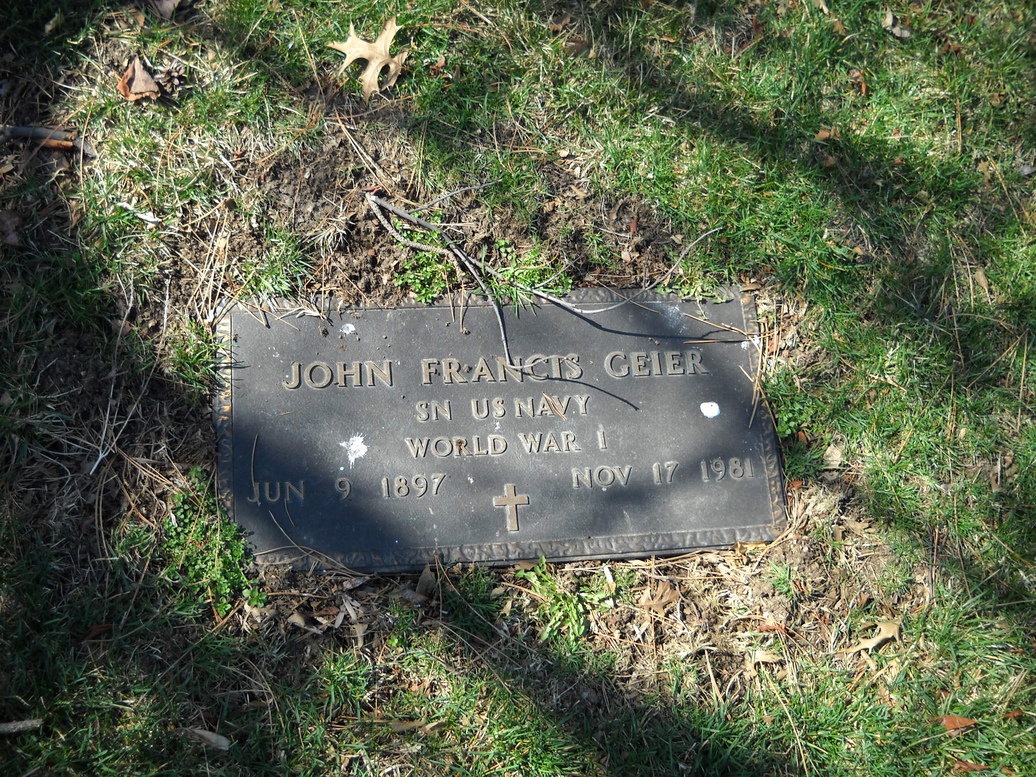 + Griffith, John C Jr; b. 18 Nov 1919; d. 02 Nov 1984; AMM2 US Navy World War II; + Veteran; Section Charity Gdn; Row 14; Photo