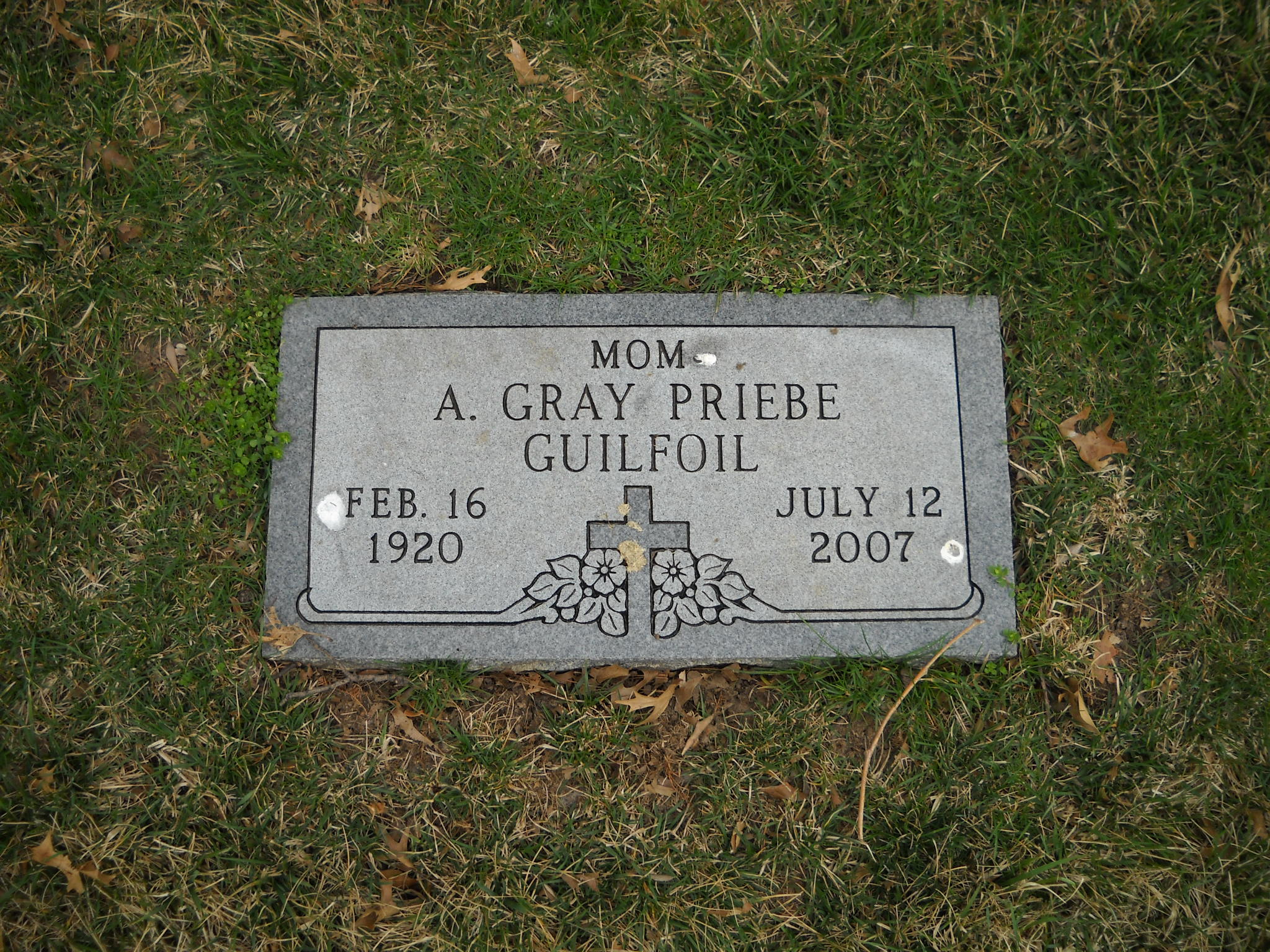 Guilfoil, A Gray Priebe; b. 16 Feb 1920; d. 12 Jul 2007; Mom; - Veteran status N/A; Section Ascension; Row 15; Photo
