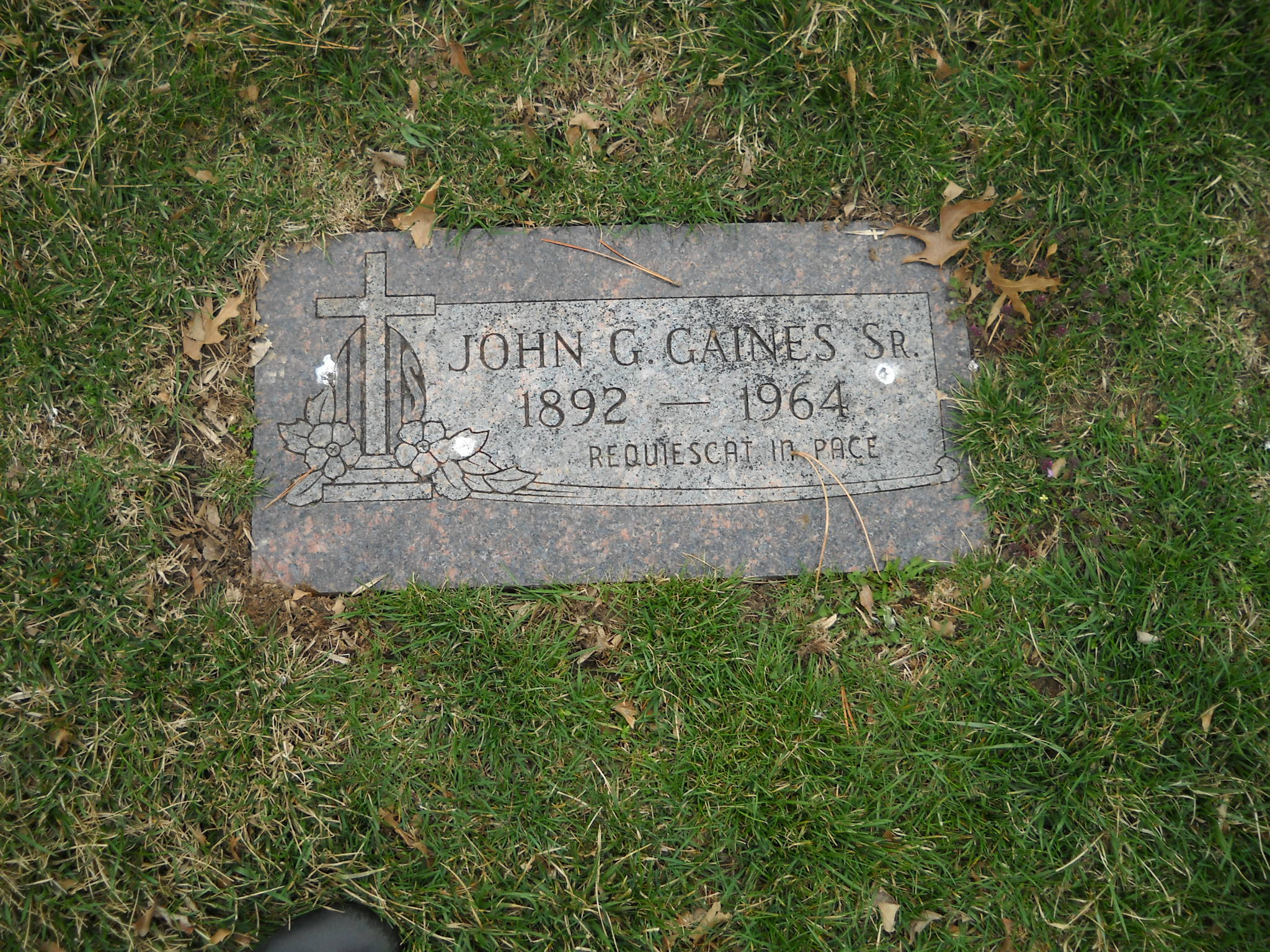 Gaines, John G Sr; b. 1892; d. 1964; - Veteran status N/A; Section Ascension; Row 18; Photo
