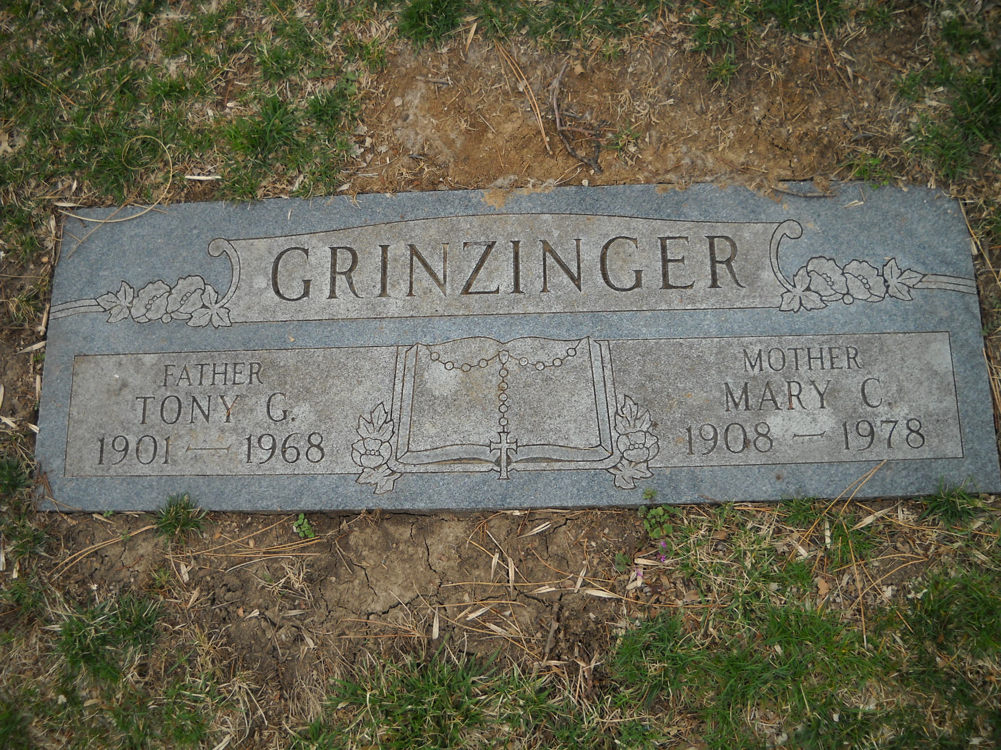 Grinzinger, Tony G; b. 1901; d. 1968; Father; s/w Mary C Grinzinger; - Veteran status N/A; Section Ascension; Row 19; Photo