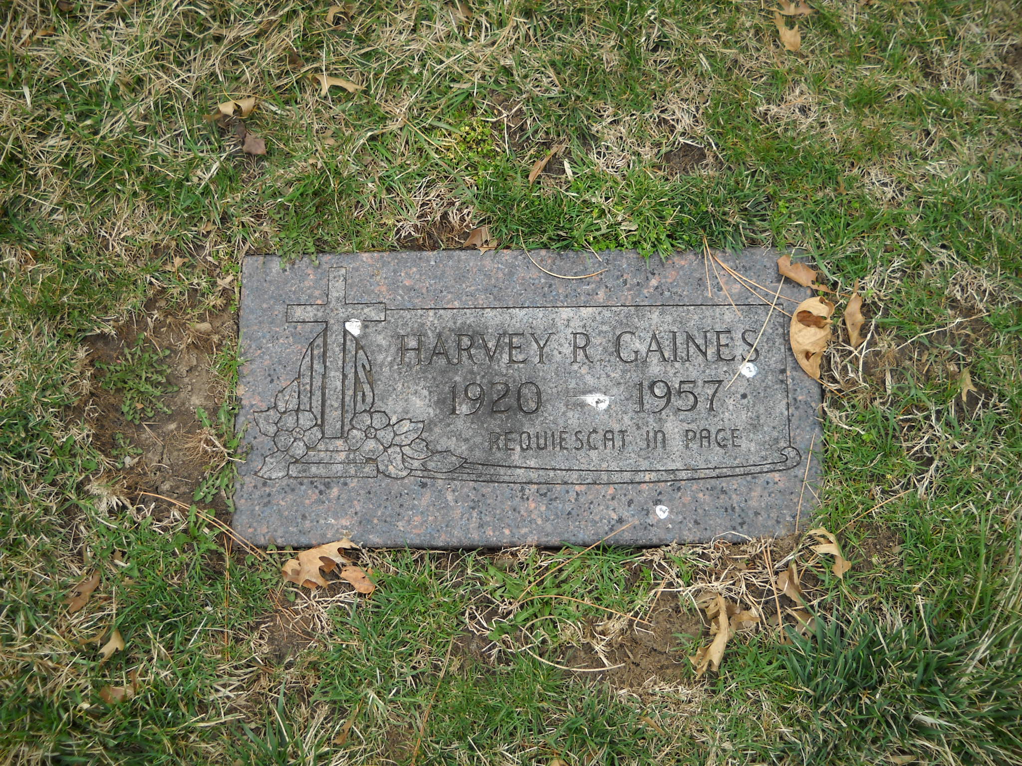 Gaines , Harvey R; b. 1920; d. 1957; - Veteran status N/A; Section Ascension; Row 19; Photo