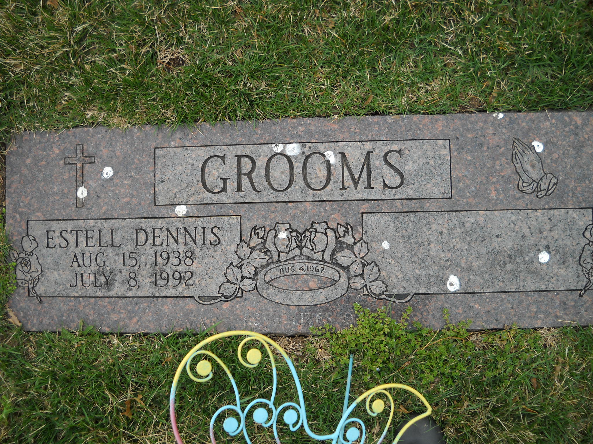 Grooms, Estell Dennis; b. 15 Aug 1938; d. 08 Jul 1992; m. 04 Aug 1962; - Veteran status N/A; Section Ascension; Row 19; Photo