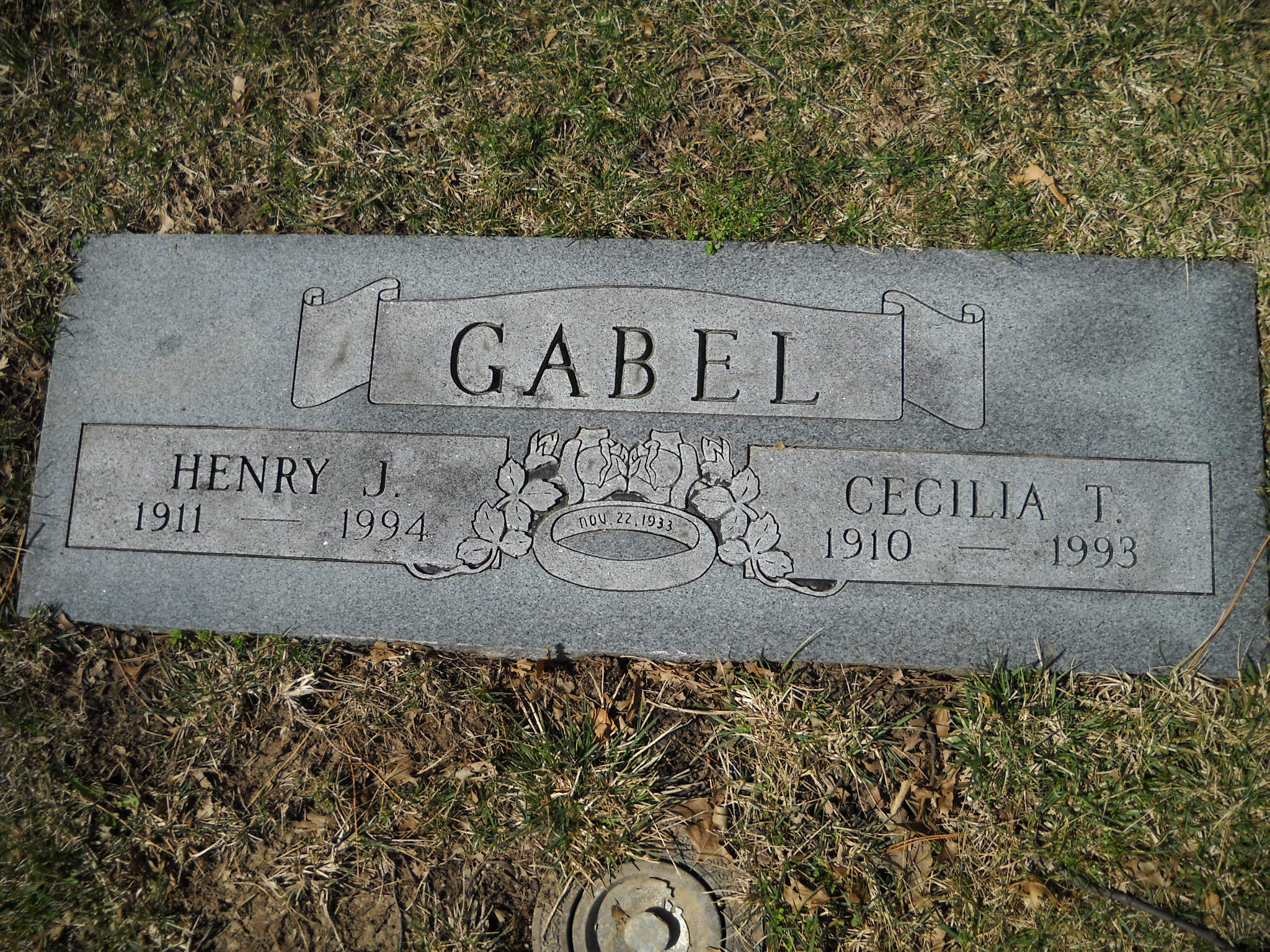 Gabel, Henry J; b. 1911; d. 1994; m. 22 Nov 1933; s/w Cecilia T Gabel; - Veteran status N/A; Section Assumption; Row 22; Photo