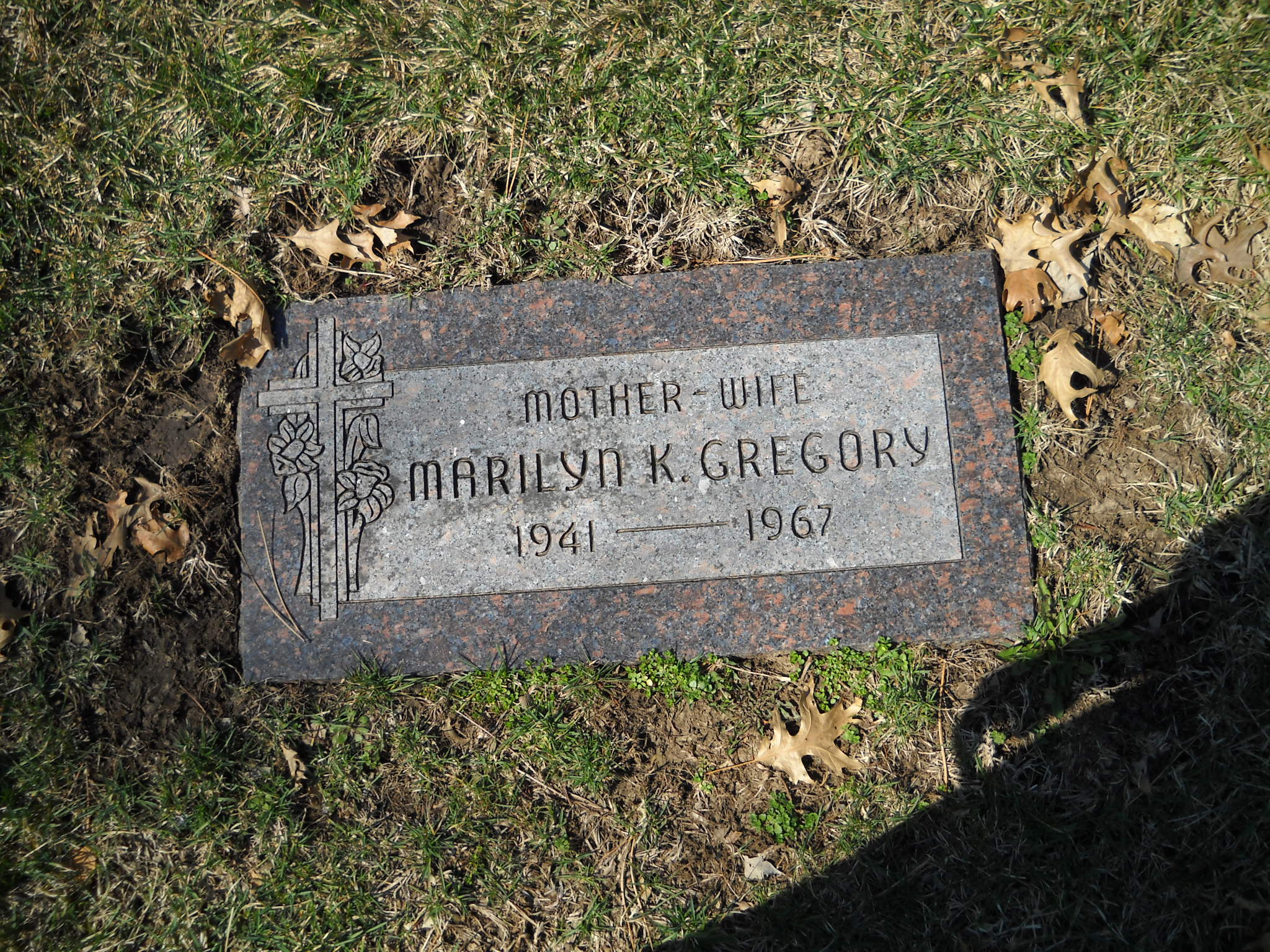 Gregory, Marilyn K; b. 1941; d. 1967; Mother Wife; - Veteran status N/A; Section Assumption; Row 25; Photo