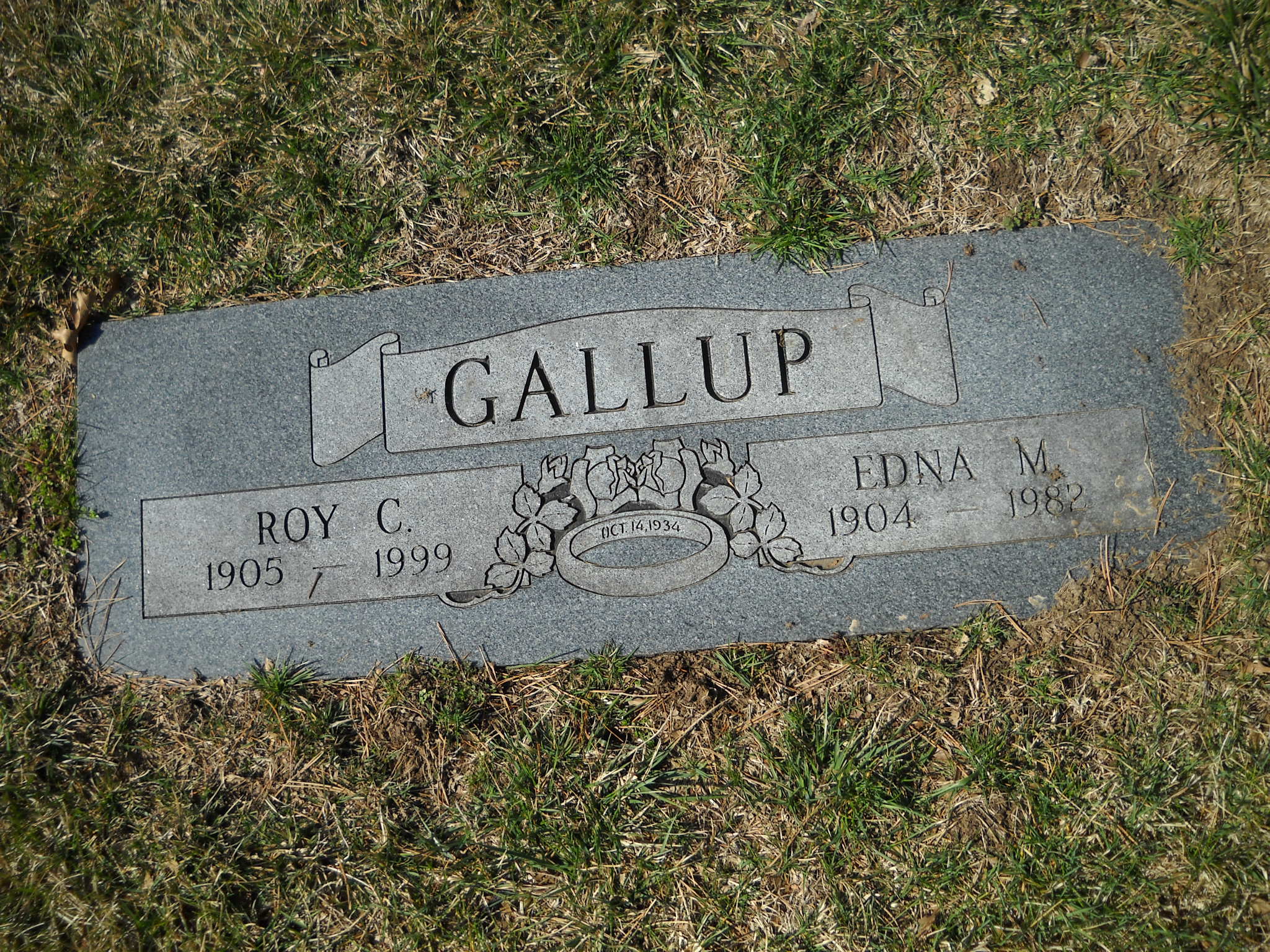 Gallup, Roy C; b. 1905; d. 1999; m. 14 Oct 1934; s/w Edna M Gallup; - Veteran status N/A; Section Assumption; Row 26; Photo