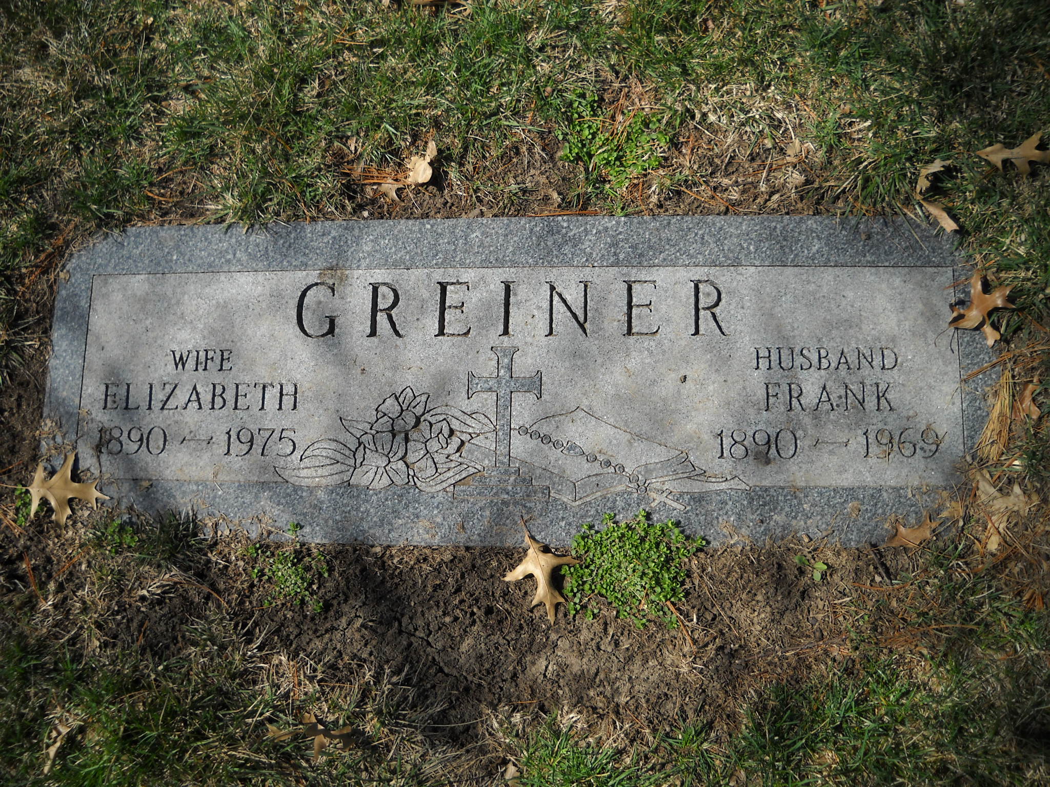 Greiner, Frank; b. 1890; d. 1969; Husband; s/w Elizabeth Greiner; - Veteran status N/A; Section Assumption; Row 37; Photo
