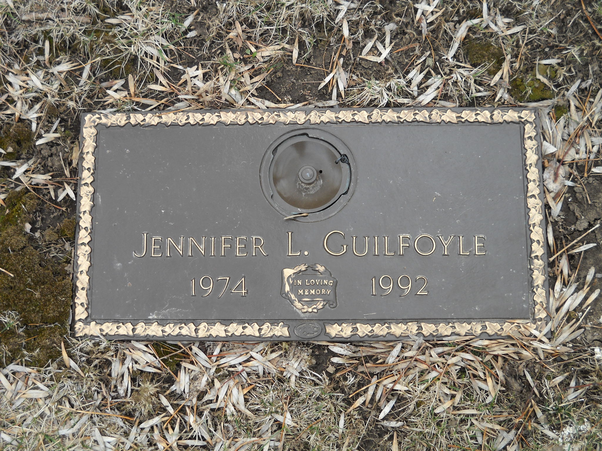 Guilfoyle, Jennifer L; b. 1974; d. 1992; - Veteran status N/A; Section Charity Gdn; Row 02; Photo