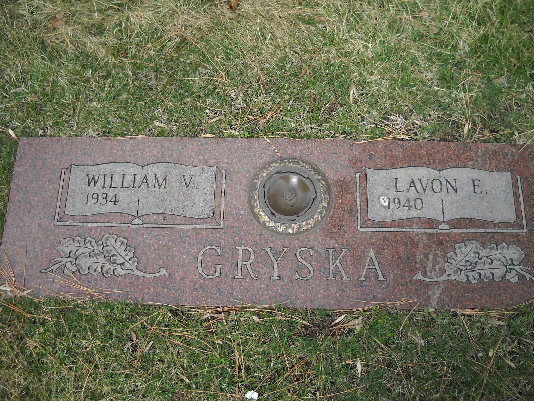 Gryska, William V; b. 1934; s/w Lavon E Gryska; - Veteran status N/A; Section Charity Gdn; Row 21; Photo