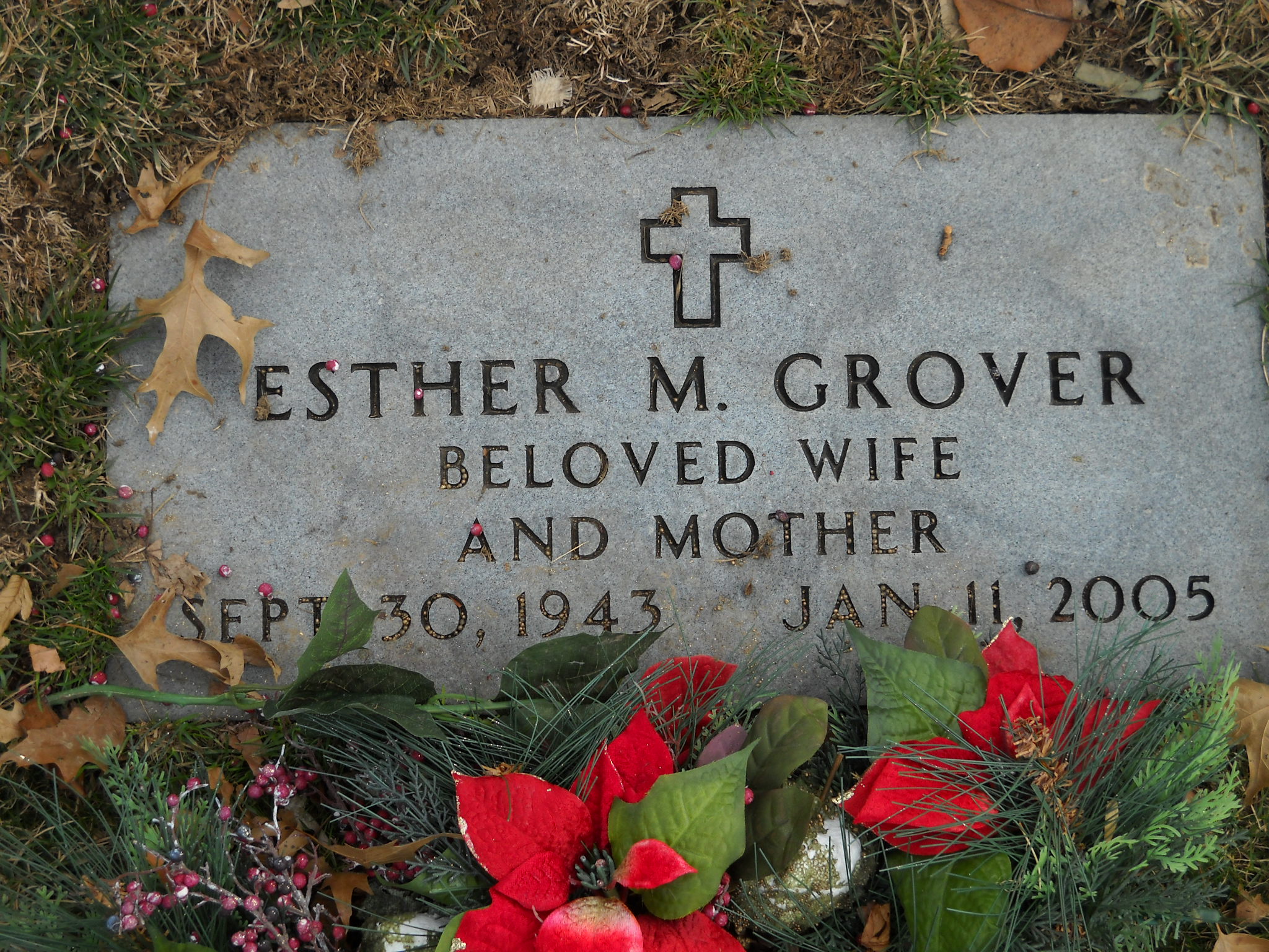 Grover, Esther M; b. 30 Sep 1943; d. 01 Nov 2005; Beloved Wife and Mother; s/w George W Grover; - Veteran status N/A; Section Faith Gdn; Row 05; Photo Photo