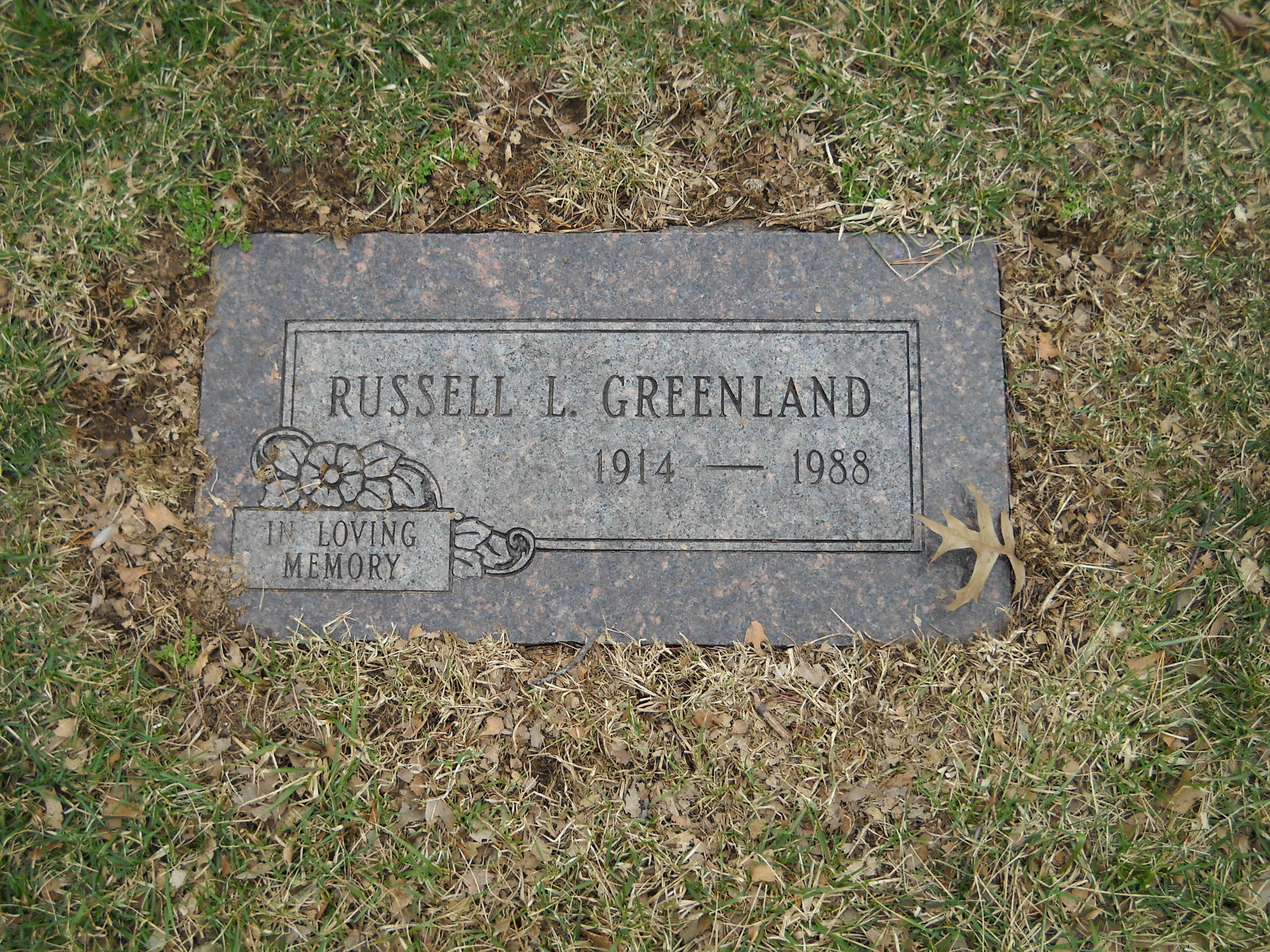 Greenland, Russell L; b. 1914; d. 1988; - Veteran status N/A; Section Faith Gdn; Row 17; Photo