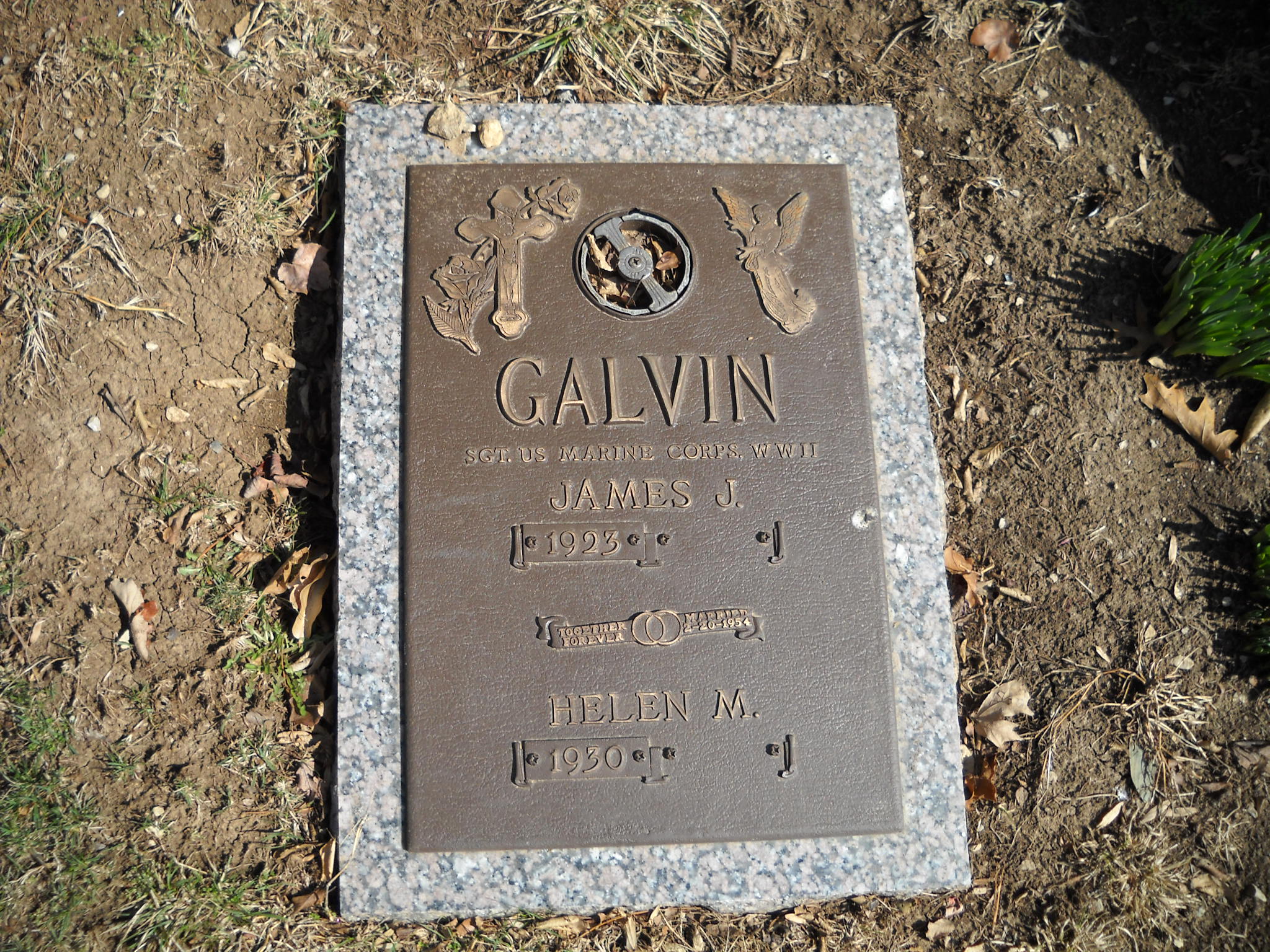 + Galvin, James J; b. 1923; m. 20 Feb 1954; SGT US MARINE CORPS WW II; s/w Helen M Galvin; + Veteran; Section Hope LC; Row 07; Photo