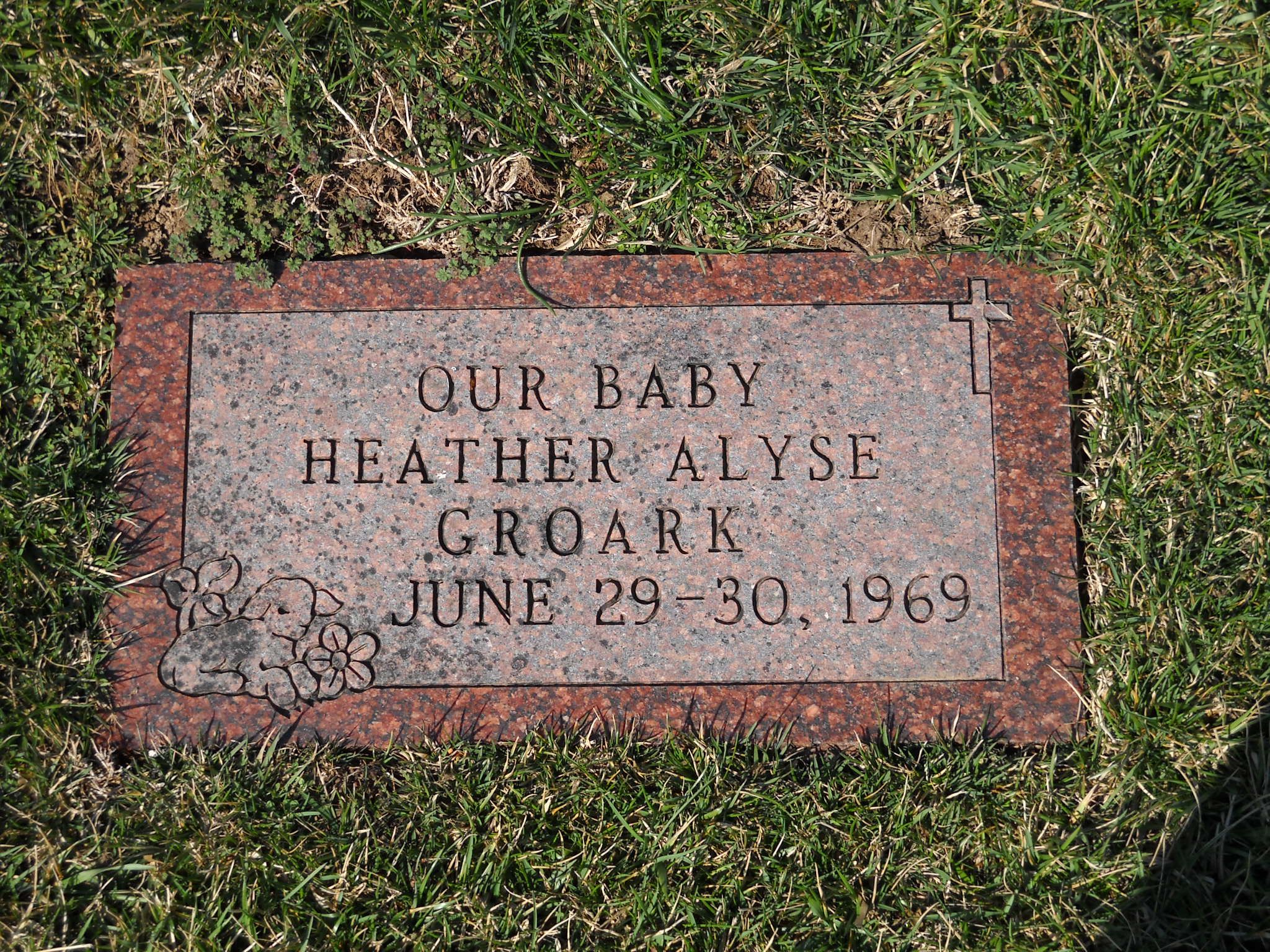 Groark, Heather Alyse; b. 29 Jun 1969; d. 30 Jun 1969; - Veteran status N/A; Section Infant; Row 02; Photo