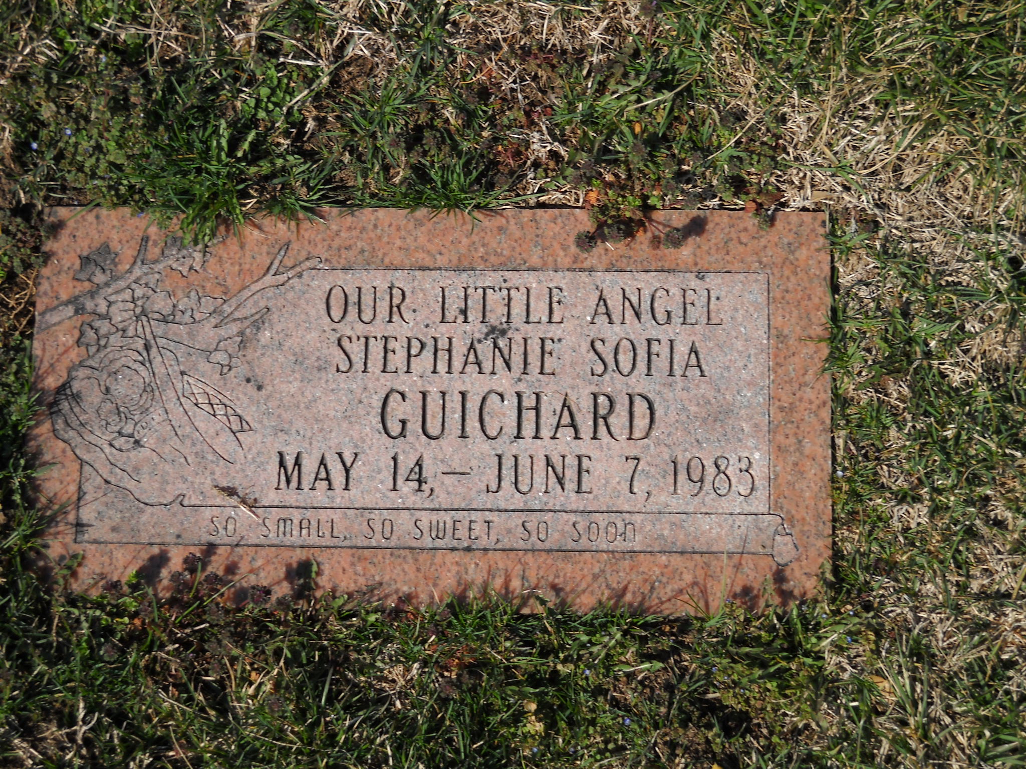 Guichard, Stephanie Sofia; b. 14 May 1983; d. 07 Jun 1983; - Veteran status N/A; Section Infant; Row 04; Photo