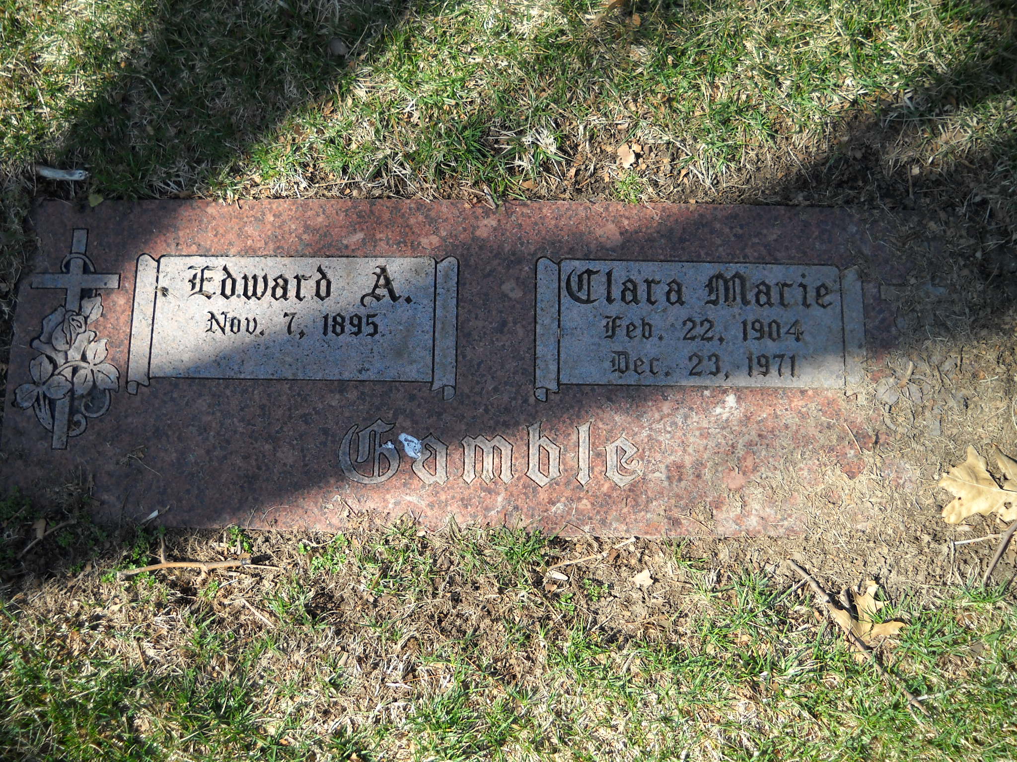 Gamble, Edward A; b. 07 Nov 1895; s/w Clara Marie Gamble; - Veteran status N/A; Section Queen Gdn B3; Row 07; Photo