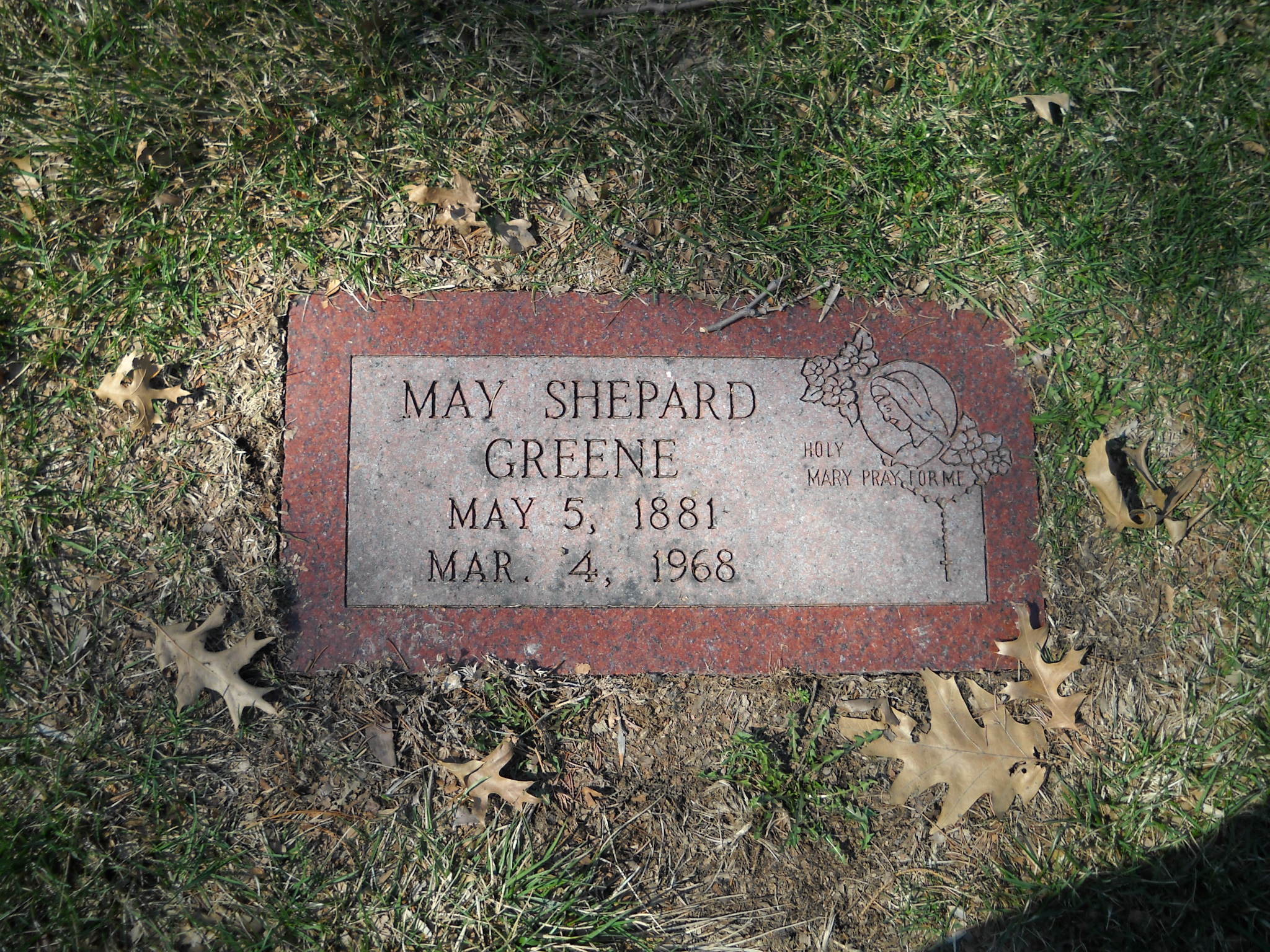 Greene, May Shepard; b. 05 May 1881; d. 04 Mar 1968; - Veteran status N/A; Section Queen Gdn B3; Row 16; Photo