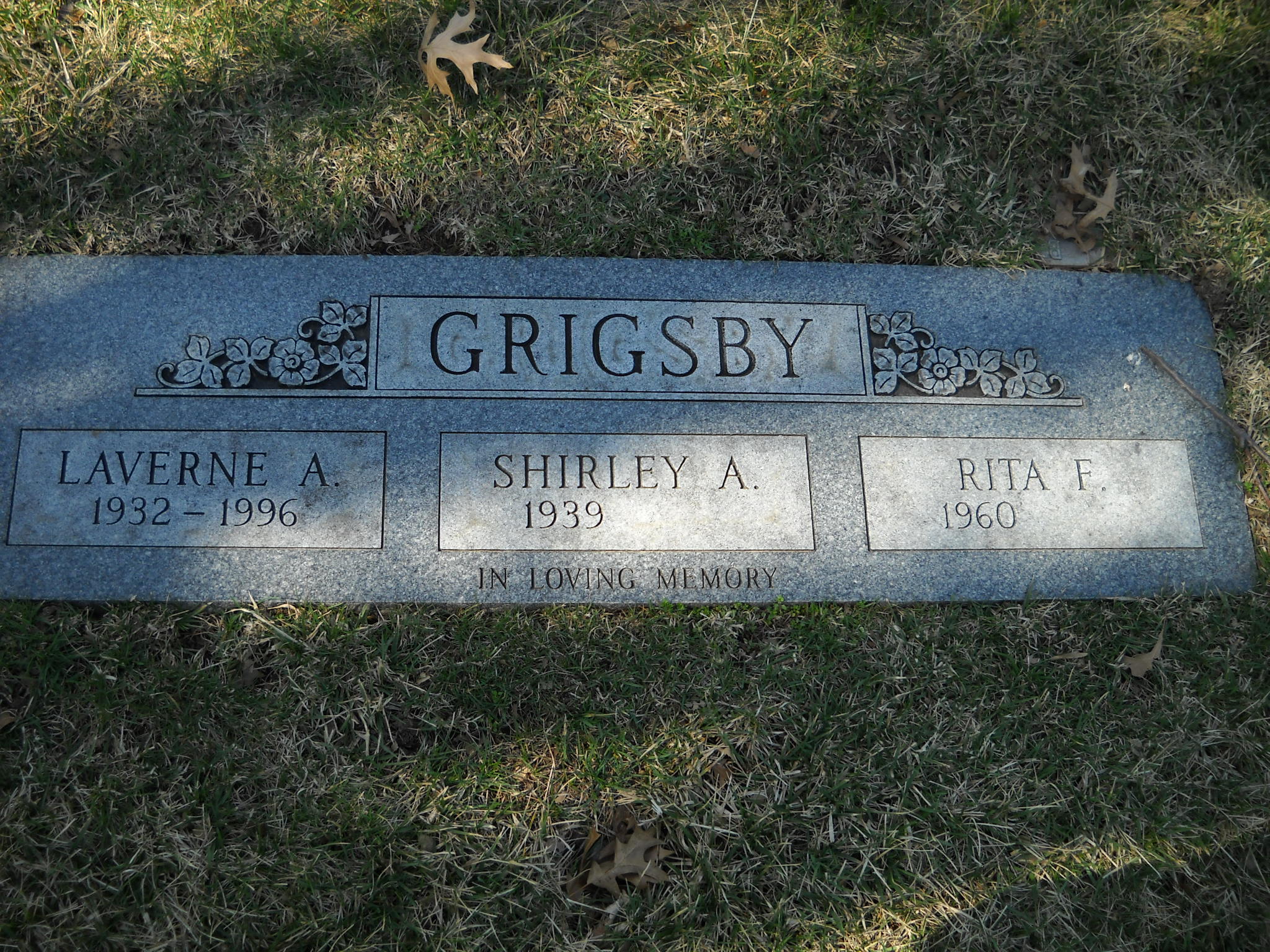 Grigsby, Rita F; b. 1960; s/w Laverne A Grigsby and Shirley A Grigsby; - Veteran status N/A; Section Queen Gdn B4; Row 07; Photo
