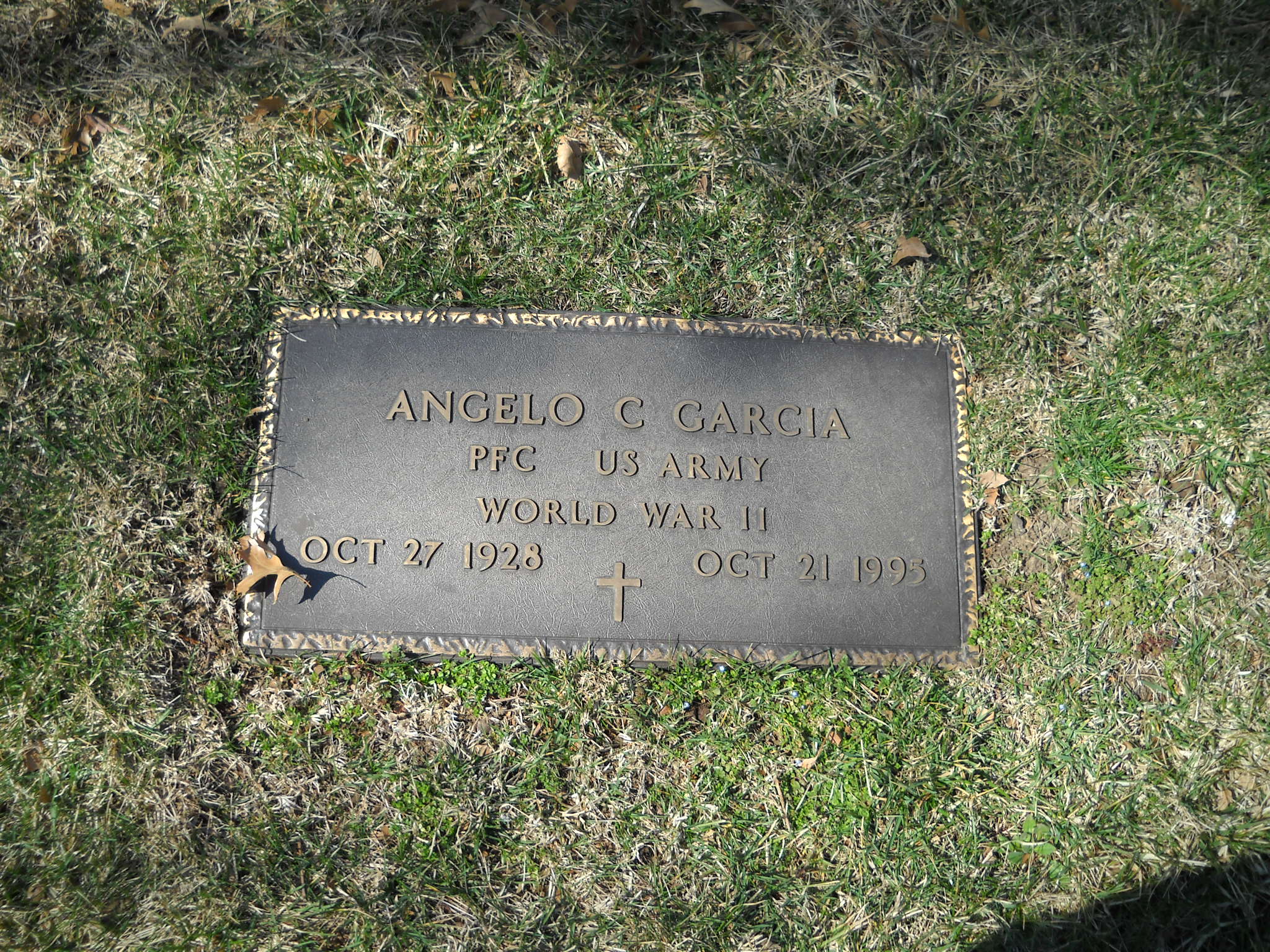 + Garcia, Angelo C; b. 27 Oct 1928; d. 21 Oct 1995; PFC US Army World War II; + Veteran; Section Queen Gdn B4; Row 09; Photo