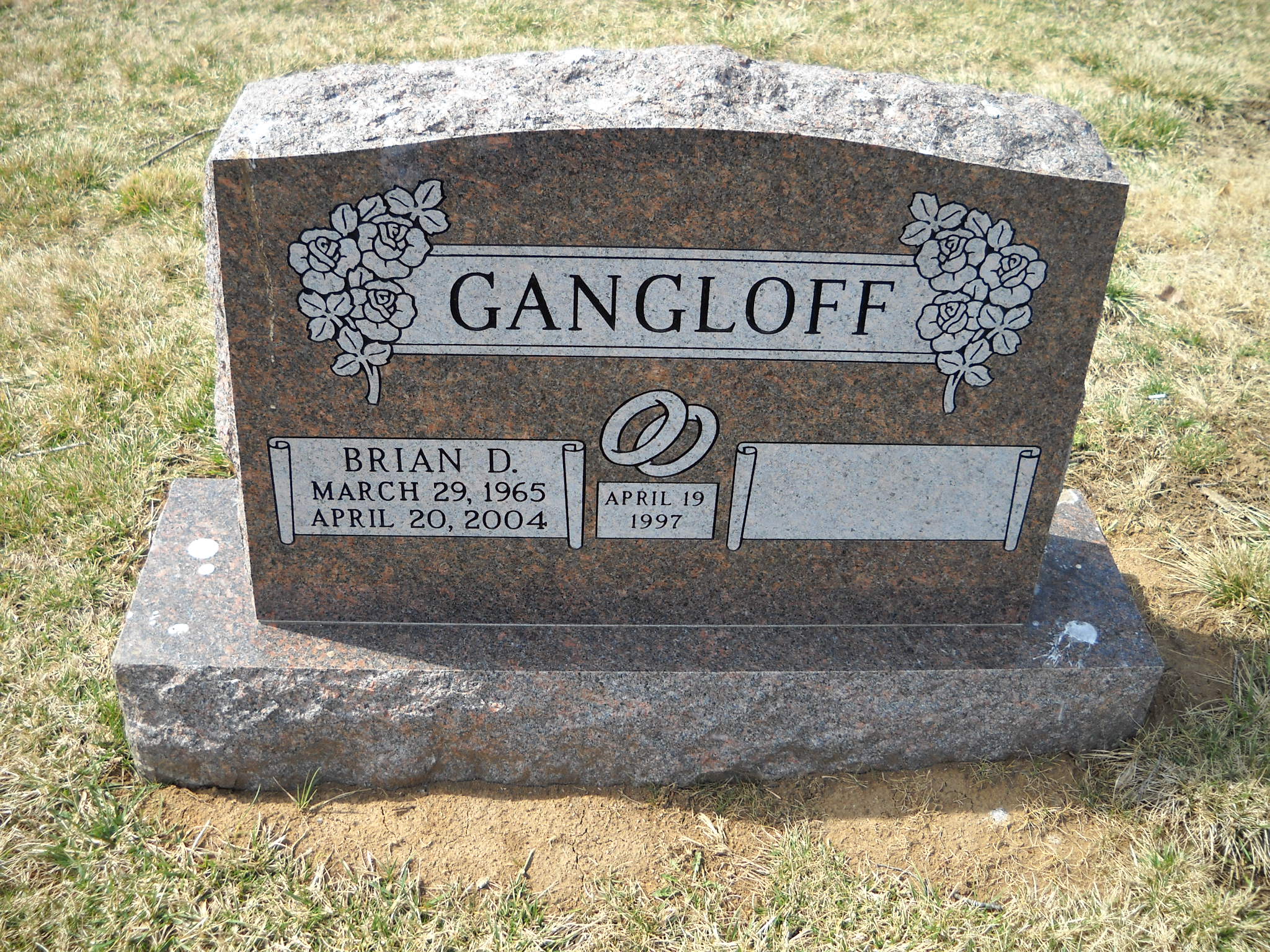 Gangloff, Brian D; b. 29 Mar 1965; d. 20 Apr 2004; m. 19 Apr 1997; - Veteran status N/A; Section Saints Gdn; Row 13; Photo