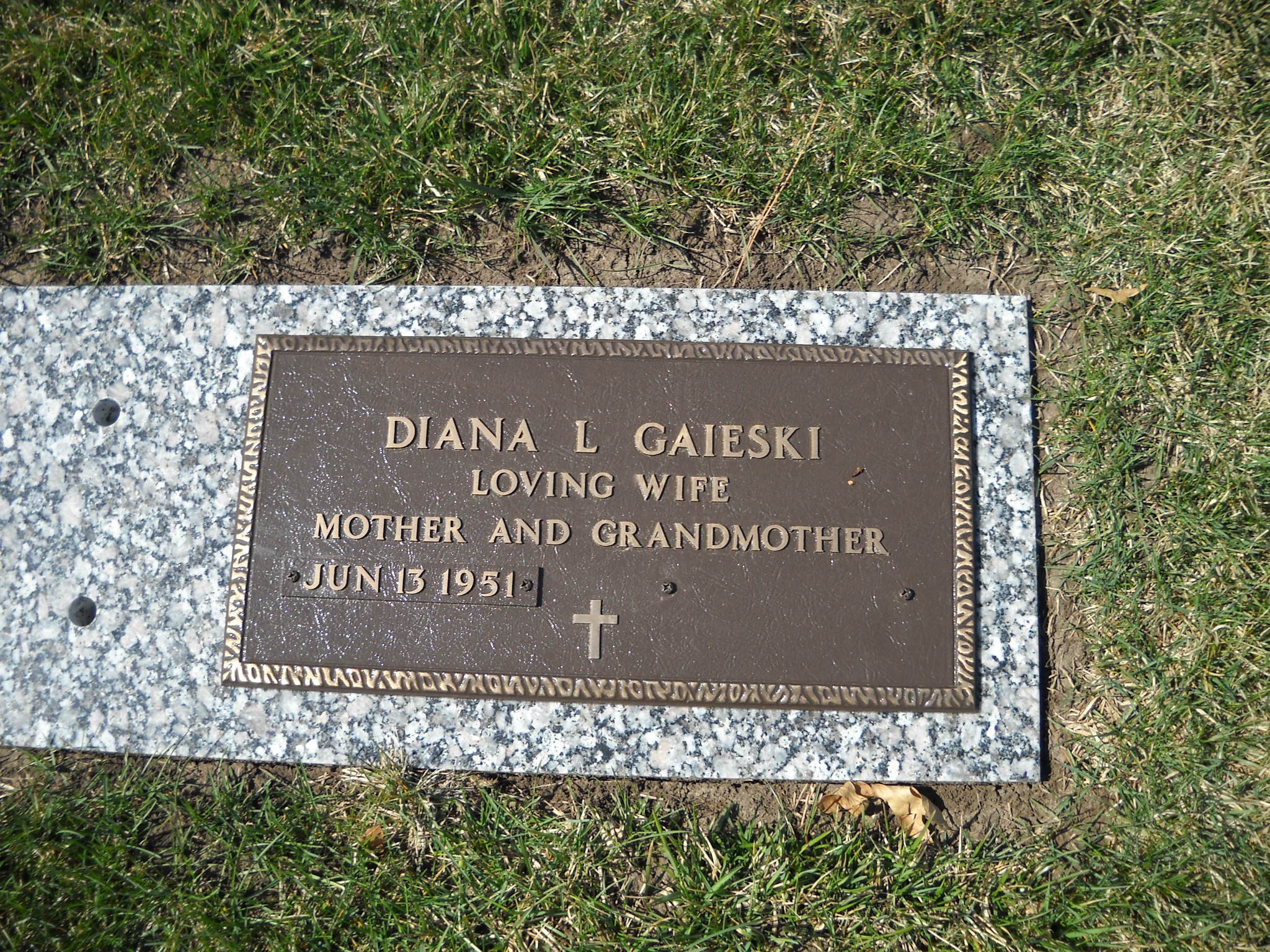 Gaieski, Diana L; b. 13 Jun 1951; Loving Wife Mother and Grandmother; - Veteran status N/A; Section Veteran Gdn; Row 06; Photo